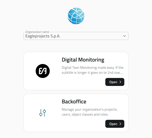 • Seleziona l’app desiderata (Backoffice o Frontoffice).