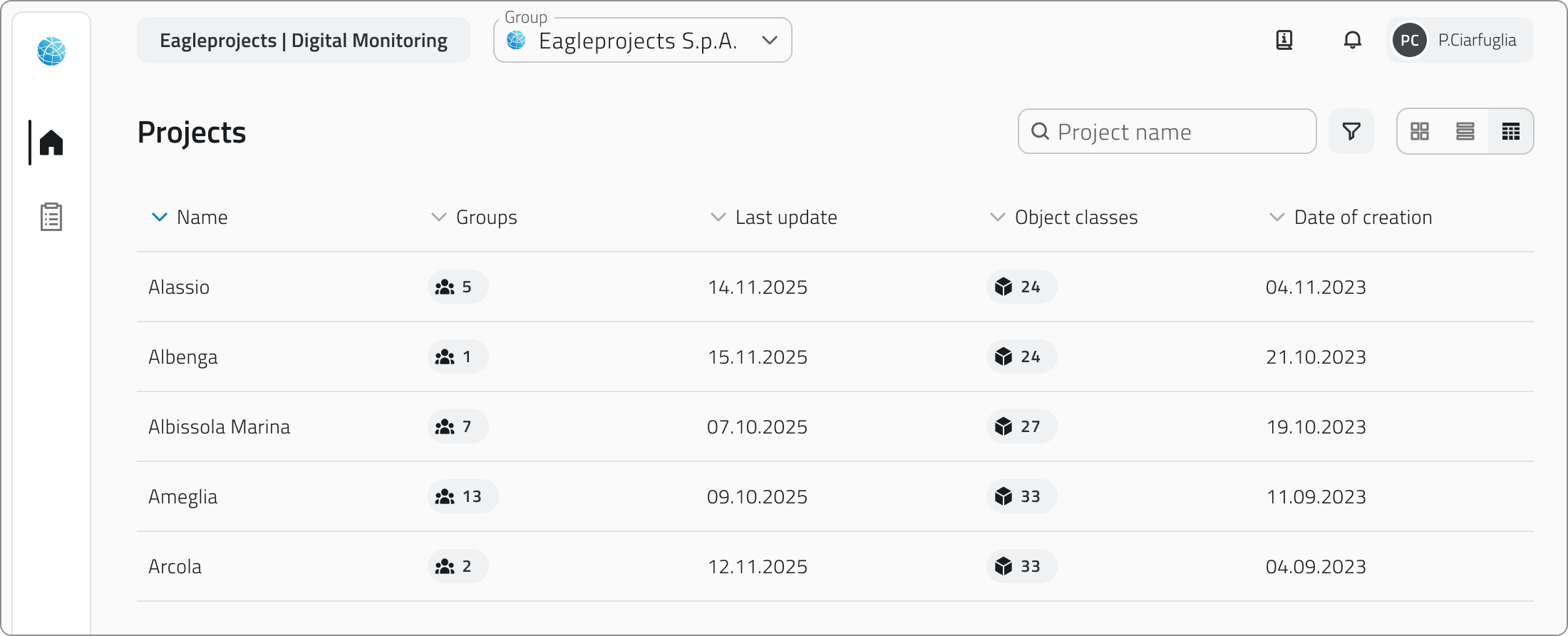 Accedere a EagleArca permette di utilizzare sia il Backoffice (gestione utenti, ruoli, gruppi, progetti, oggetti e classi oggetto) sia l’App Frontoffice (raccolta dati e lavoro sul campo).