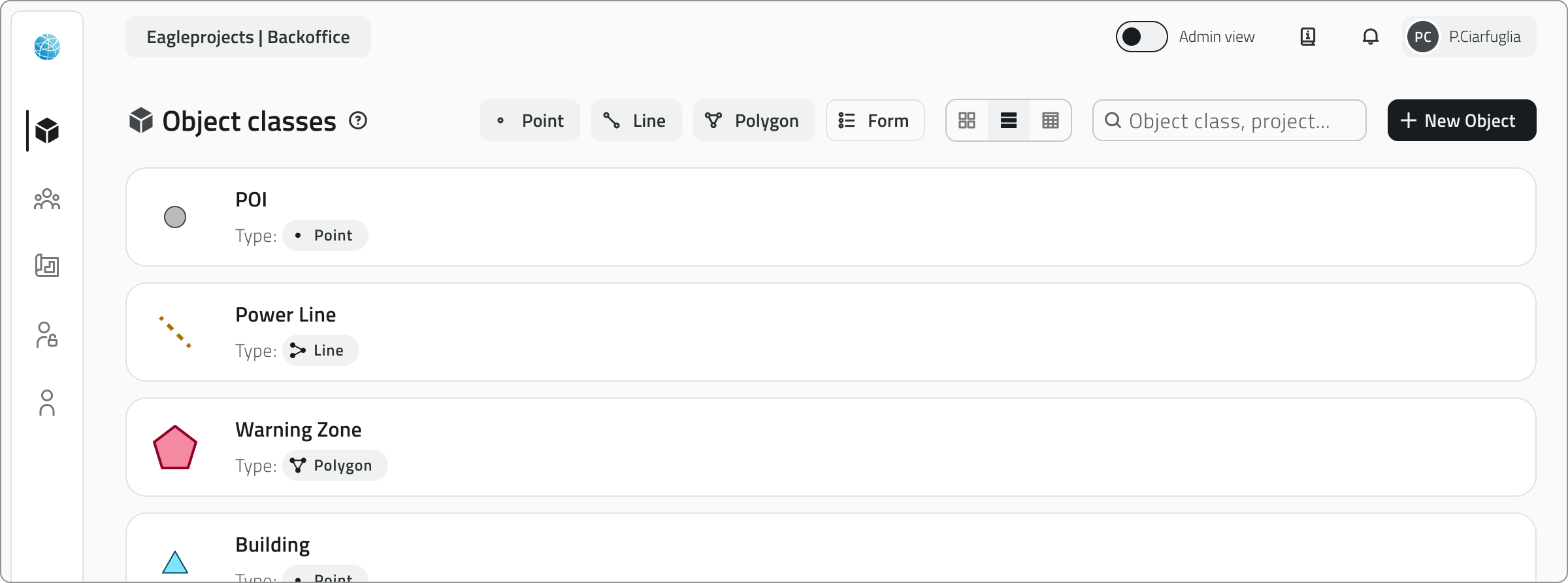 Le Classi Oggetto vengono create e modificate nel Backoffice, da utenti con permesso backoffice.