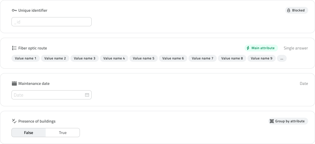 Ogni classe rappresenta un tipo di elemento censibile, per esempio una pianta, un palo, una condotta o un sensore, e stabilisce quali informazioni devono essere raccolte e come l’oggetto deve apparire sulla mappa.
