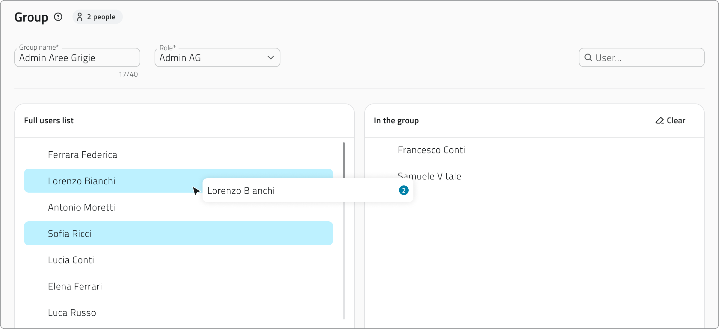 💡 I gruppi vengono creati nel Backoffice (Creare e gestire gruppi).
