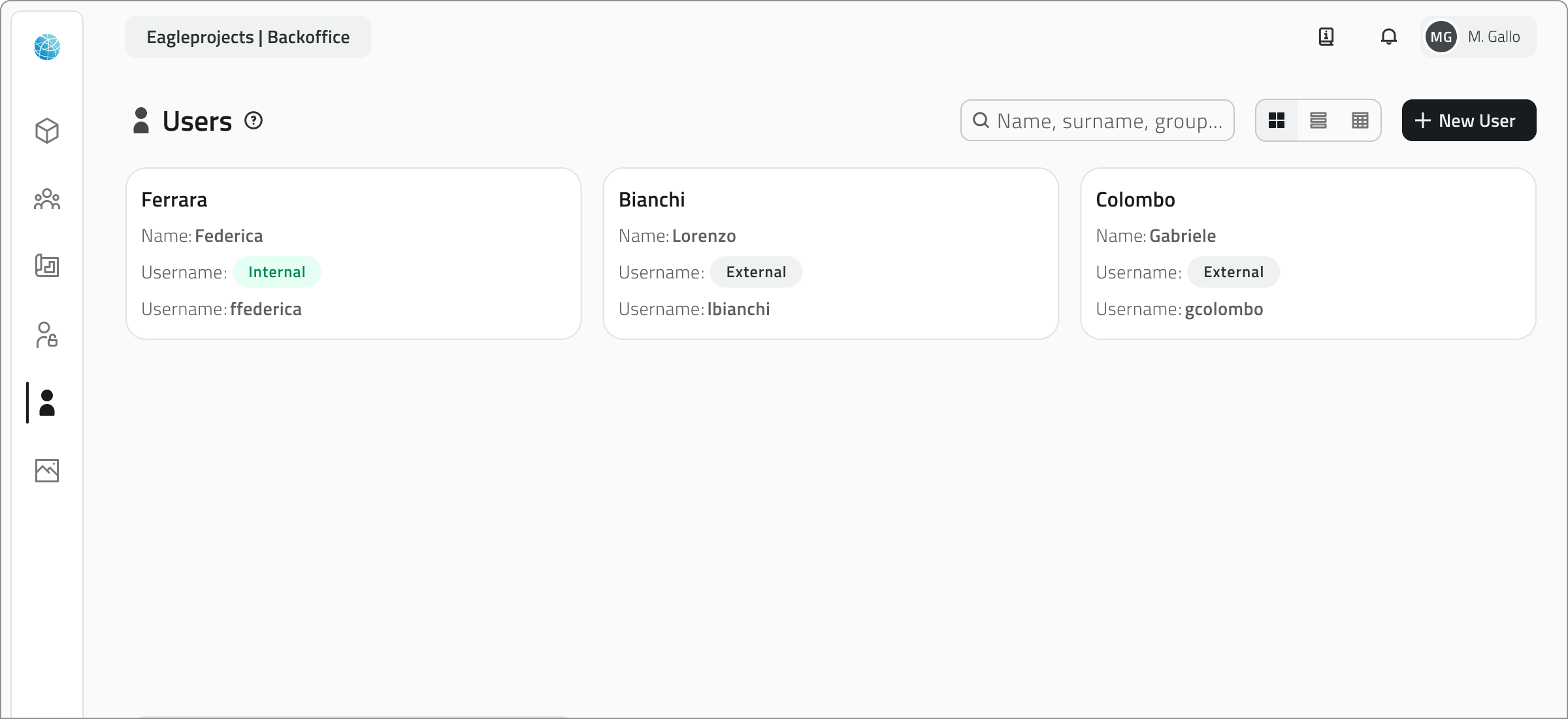 In EagleArca, l’accesso e i permessi di ogni persona vengono gestiti attraverso utenti, ruoli e gruppi.