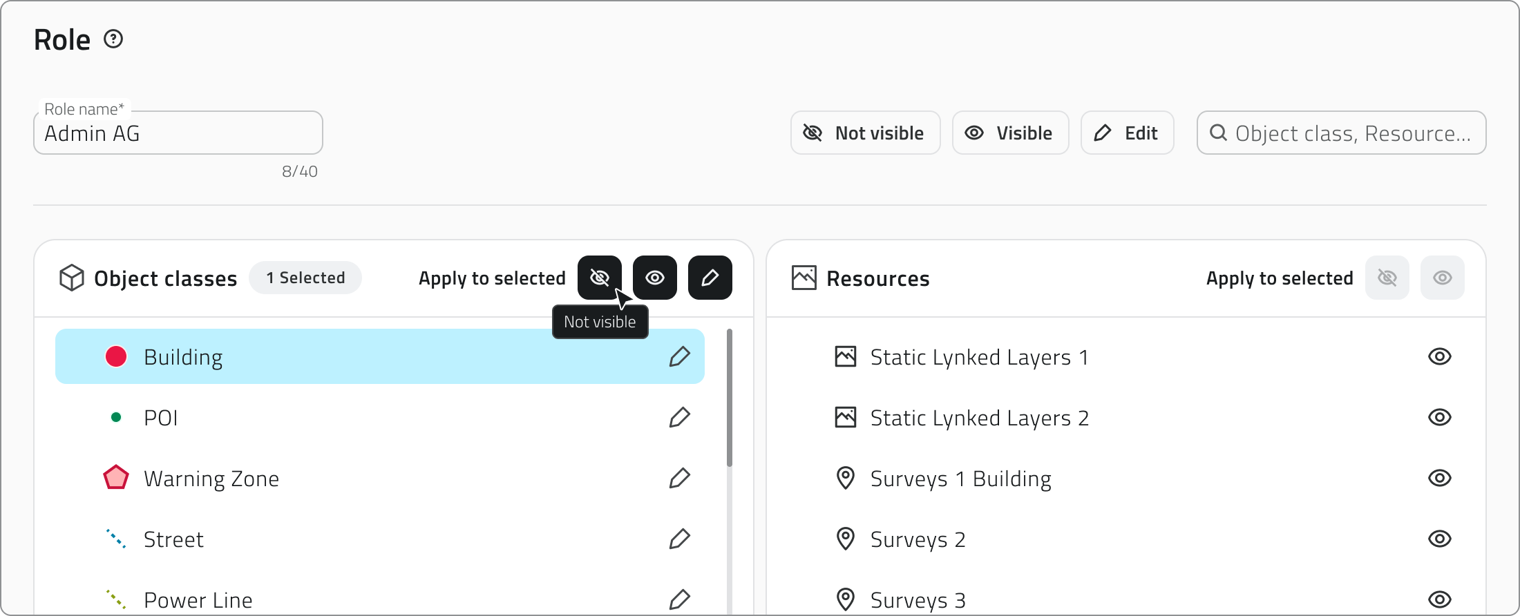 Le classi oggetto possono essere impostate come non visibili, visibili o modificabili.