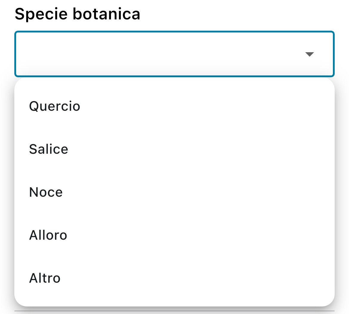- Lista valori: permette di selezionare una o più opzioni da un elenco.