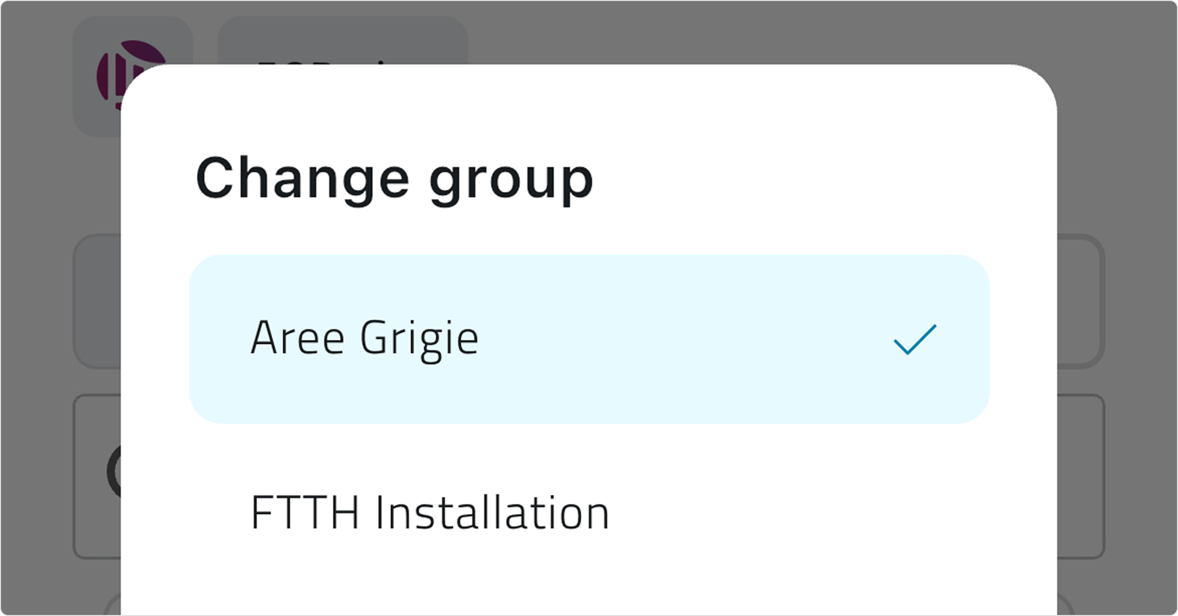 Seleziona il nuovo gruppo e conferma con Select per applicare la modifica, oppure Cancel per chiudere senza modifiche.