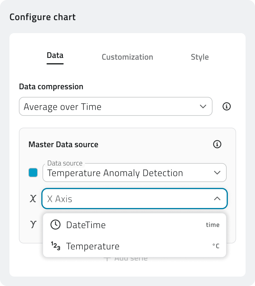 Data compression: Seleziona il metodo predefinito (Average over Time o Subsampling).