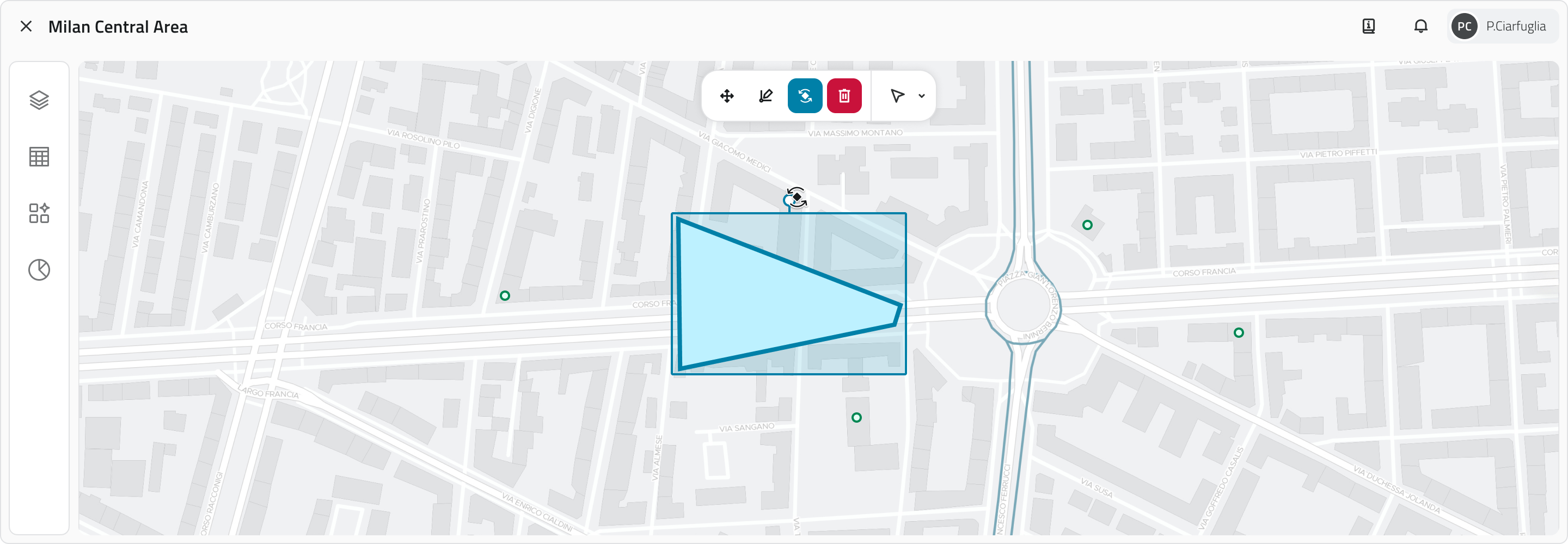 La rotazione modifica l'orientamento di oggetti di tipo Linea o Poligono.