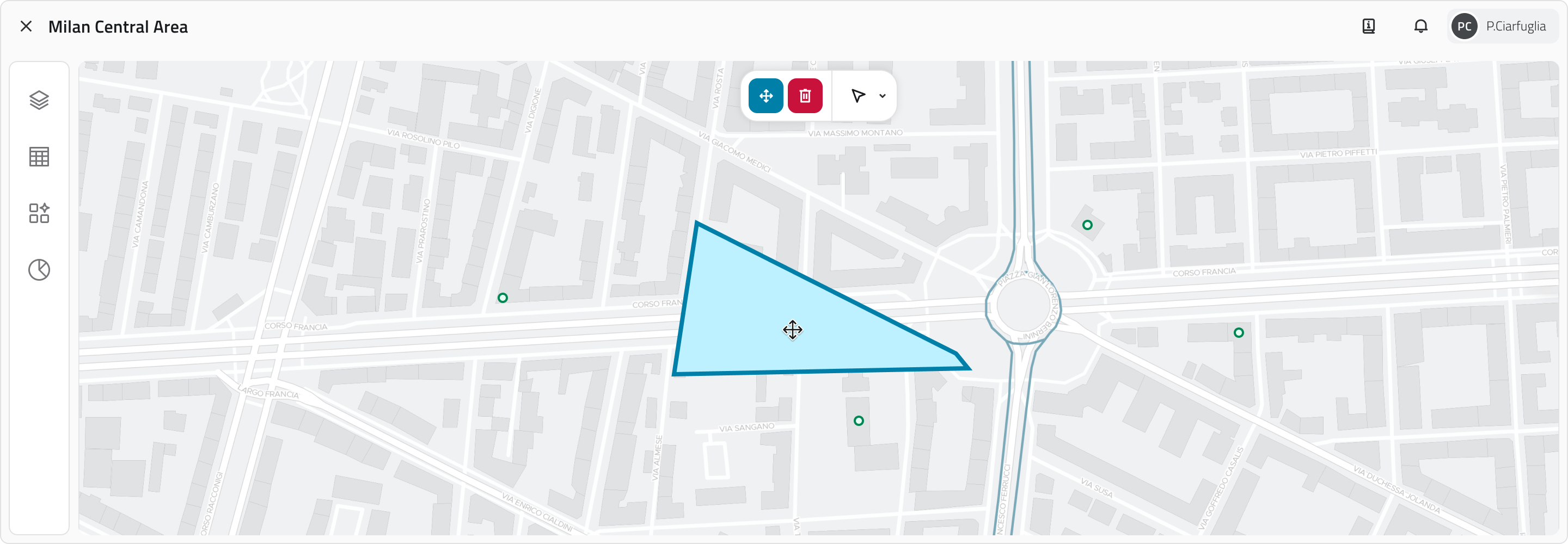 • Poligono: Clic sinistro per inserire vertici (l'anteprima appare dopo il 3° vertice), Clic destro per chiudere.