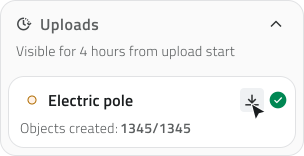 Nella tab Tools, è disponibile la sezione Uploads, che permette di monitorare lo stato dell’importazione dello shapefile.