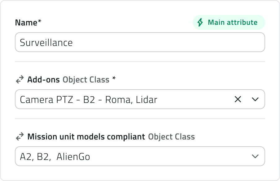 Gli Add-on includono telecamere, sensori o moduli accessori compatibili con le Mission Units e già definiti a sistema.