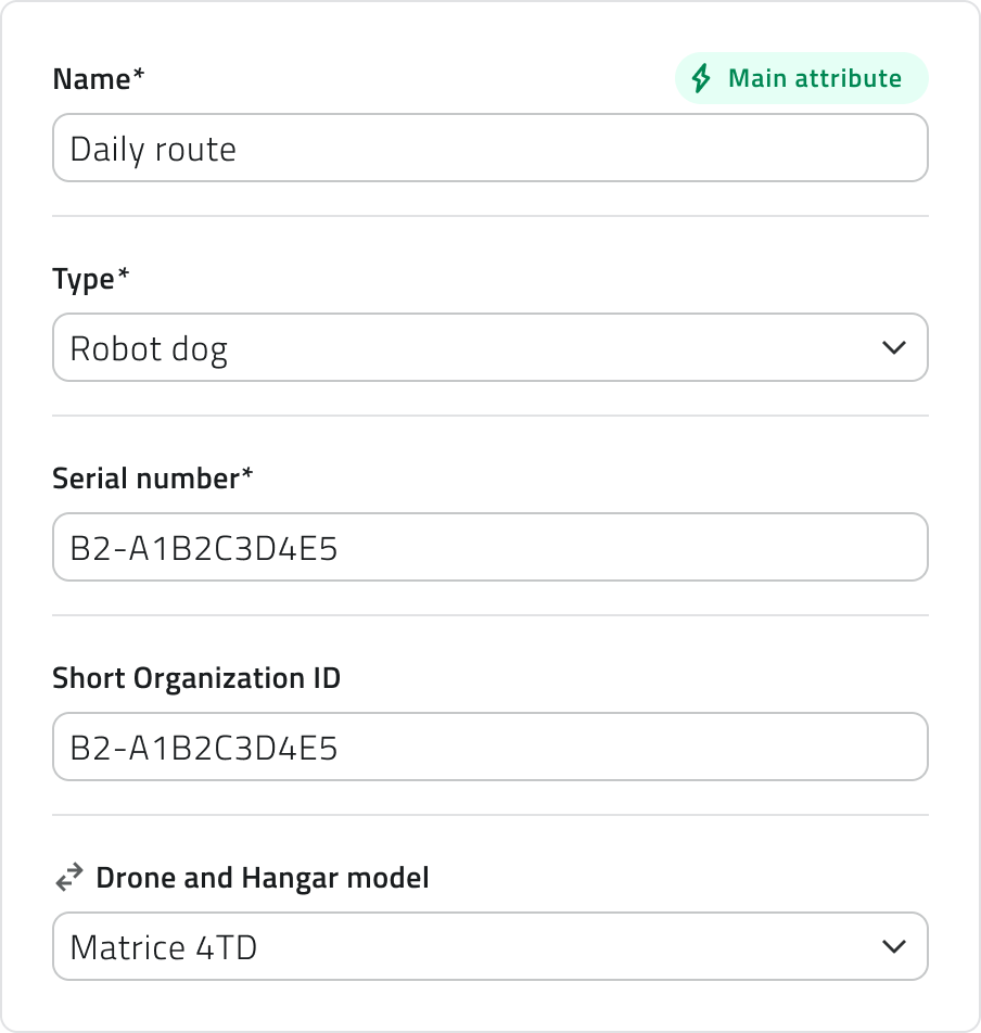 - Short Organization ID: Codice che viene fornito dal supporto di EagleArca, necessario per identificare l'organizzazione a cui appartiene il drone.