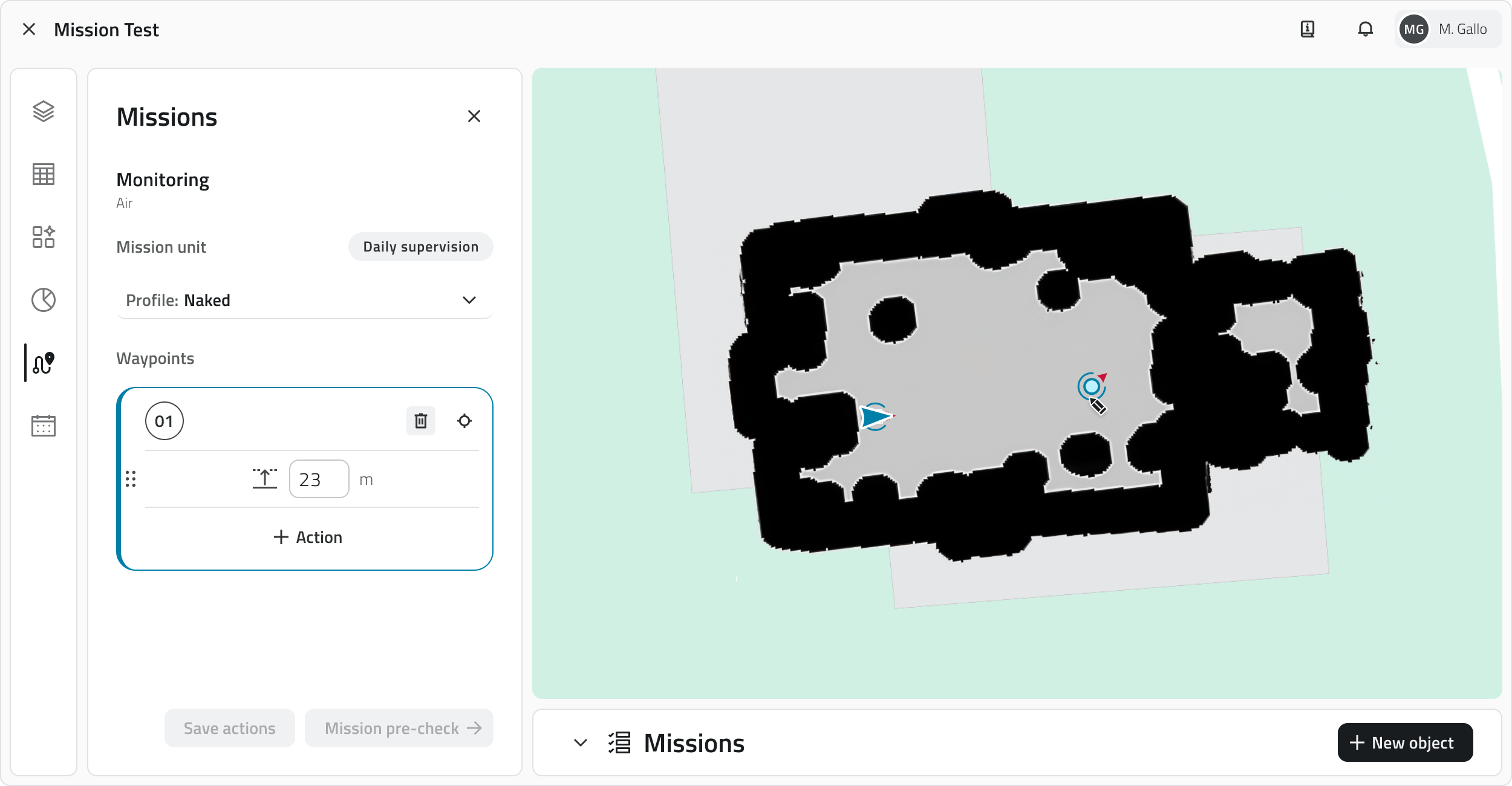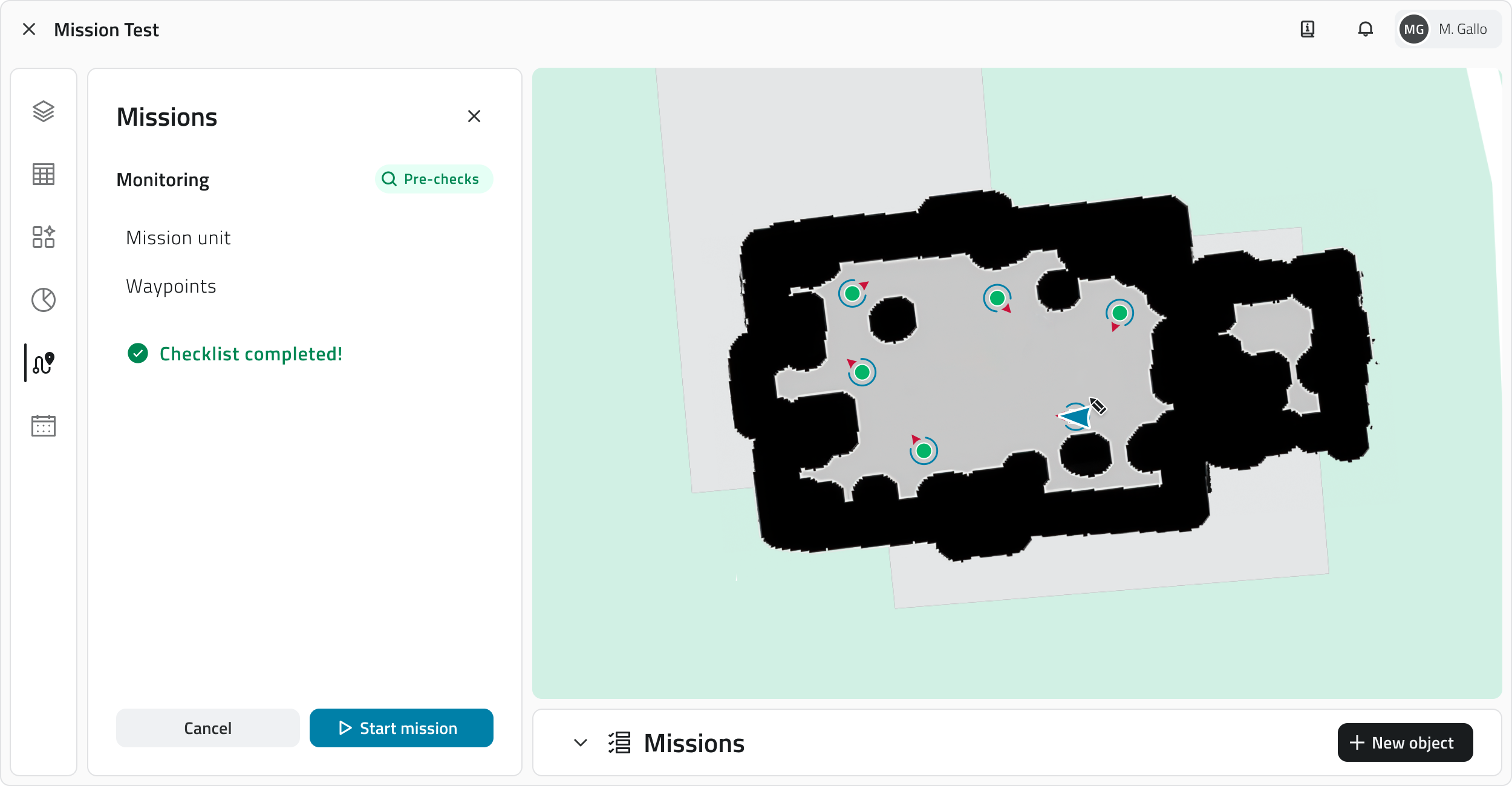 Dopo aver configurato Waypoint e azioni, la missione può essere verificata e avviata.