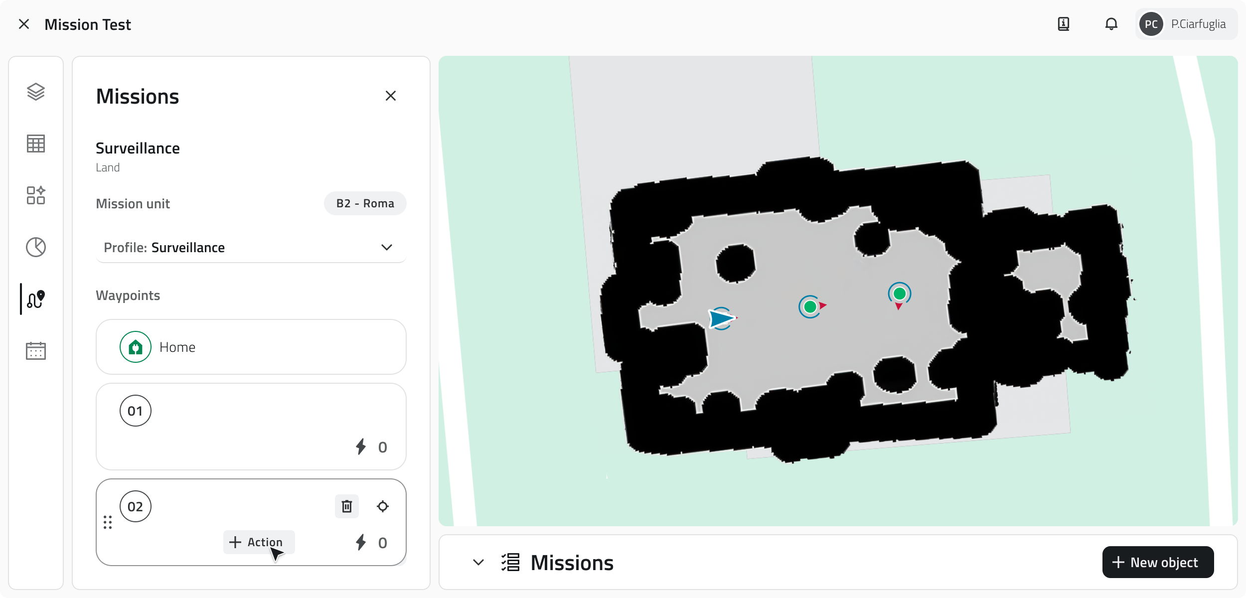 - Per avviare la missione, almeno un Waypoint deve avere almeno un’azione configurata