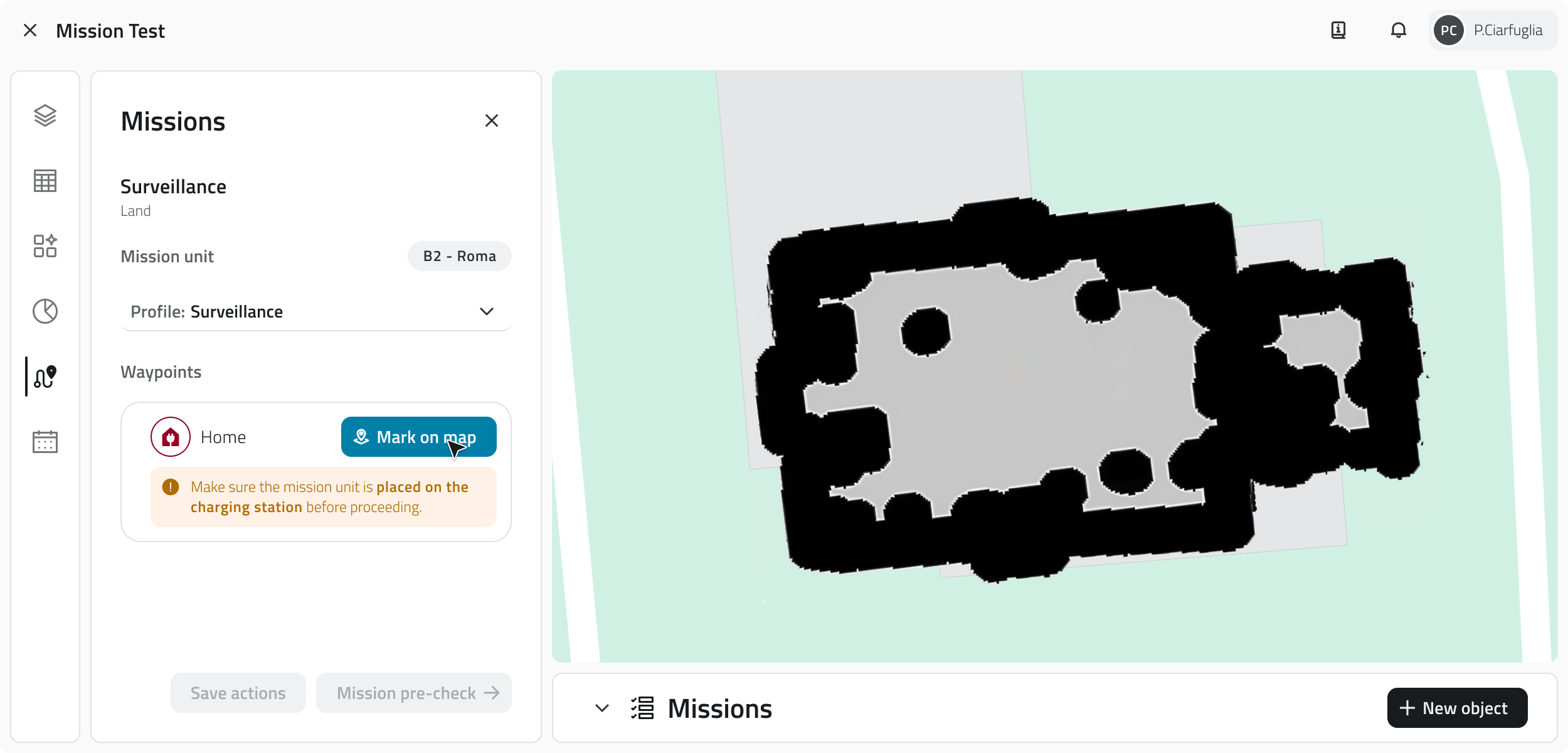 - Per avviare la missione, almeno un Waypoint deve avere almeno un’azione configurata