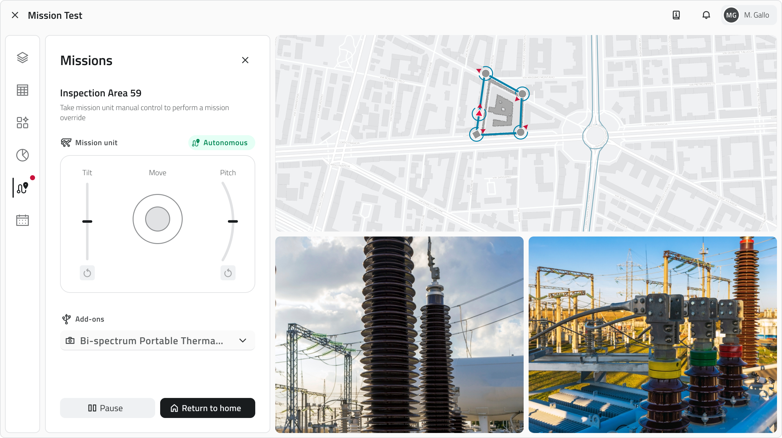 Durante l’esecuzione viene sempre mostrato lo stato corrente della missione, è possibile operare in modalità autonoma o in controllo manuale.